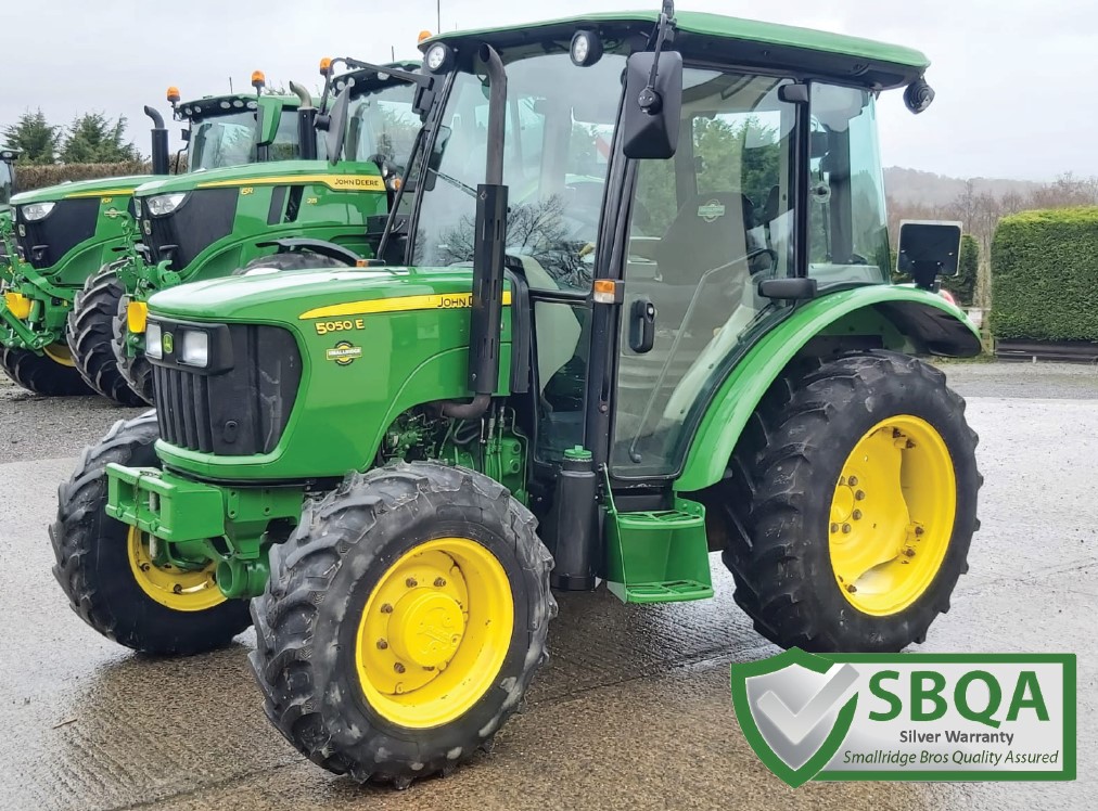 71 REG JOHN DEERE 5050E. 35KPH 12x12 TRANSMISSION WITH OIL CLUTCH & ELECTRIC SHUTTLE, 4WD, TECHCENTRE CAB WITH AIR CONDITIONING, AIR SEAT & LED WORK LIGHTS. SERVICED THROUGH & OFFERED WITH SBQA WARRANTY.