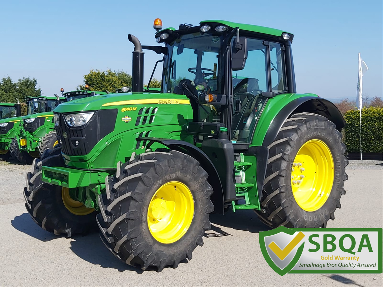 EX HIRE JOHN DEERE 6140M. 40KPH AUTOQUAD TRANSMISSION, FULL SUSPENSION, 3 REAR VALVES WITH INDEPENDENT VALVE FOR PICK-UP HITCH EXTEND/RETRACT, ITEC, GREENSTAR & ISOBUS READY, PREMIUM AIR SUSPESNION SEAT & PASSENGER SEAT. ON 600/65R38 540/65R24 TRELLEBORG. WITH POWERGARD PLUS TO OCTOBER 2026.