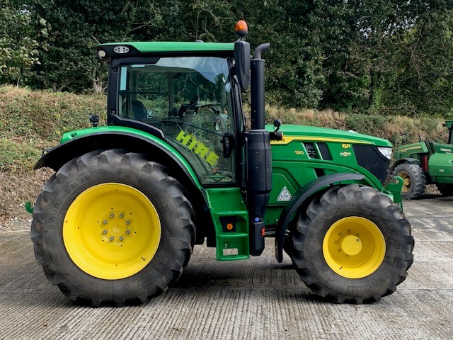 EX HIRE JOHN DEERE 6R 130. 50KPH AUTOPOWR, FULL SUSPENSION, AUTOTRAC READY, GEN 5 DISPLAY WITH AT ACTIVATED, 114LPM HYDRAULIC PUMP, 3 REAR & 3 MID ELECTRIC VALVES WITH JOYSTICK, AIR TRAILER BRAKES & ABS SOCKET, ZUIDBERG FRONT LINKAGE. ON 600/65R38 & 540/65R24 MICHELIN. PG PLUS TO JAN 2027 OR 3000 HRS.