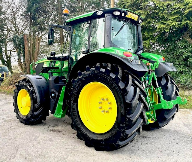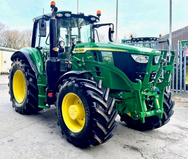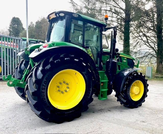 EX HIRE JOHN DEERE 6M 145. 50KPH AUTOPOWR, FULL SUSPENSION, COMMAND ARM, AUTOTRAC READY, 155LPM HYD PUMP, 4 REAR & 2 MID ELECTRIC VALVES WITH JOYSTICK, ITEC, AIR BRAKES, FRONT LINKAGE, LED LIGHTS & JDLINK. READY TO TAKE JOHN DEERE LOADER WITH MULTI COUPLER. ON 650/65R38 & 540/65R28 BRIDGESTONE.