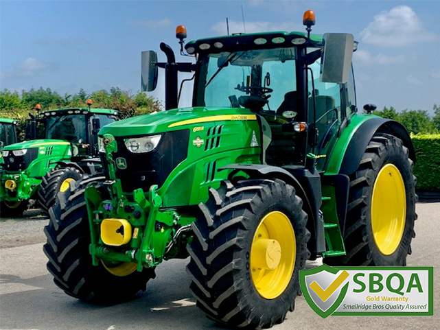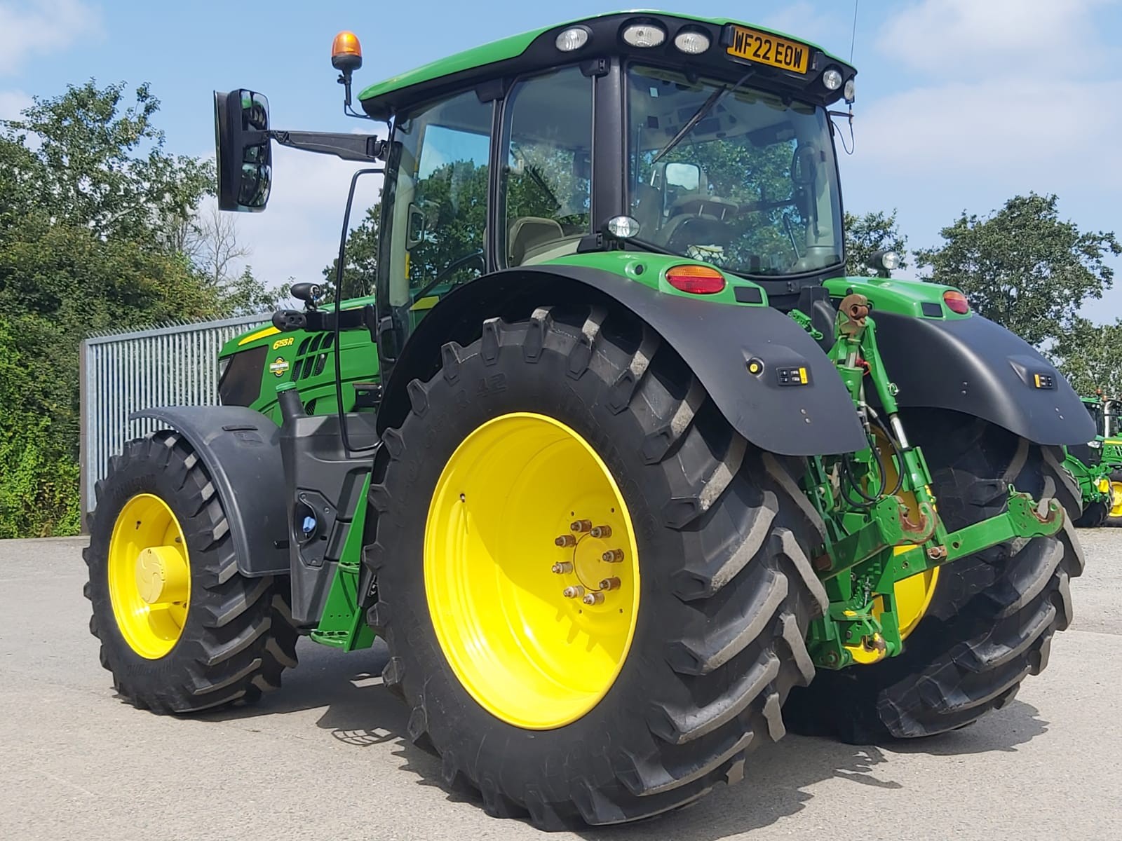 2022 JOHN DEERE 6155R PREMIUM EDITION. 50KPH AUTOPOWR TRANSMISSION, FULL SUSPENSION, AUTOTRAC READY, 4600 DISPLAY WITH AT ACTIVATION, 155LPM HYDRAULIC PUMP, 4 REAR ELECTRIC VALVES, HYDRAULIC TOPLINK, AIR TRAILER BRAKES, FRONT LINKAGE & PTO. ON 650/65R42 & 540/65R30 TRELLEBORG. WITH SBQA GOLD.
