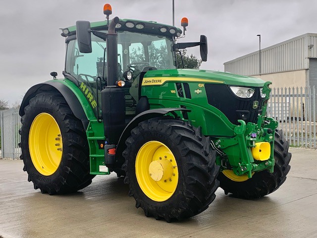 EX HIRE JOHN DEERE 6R 185. 50KPH AUTOPOWR, FULL SUSPENSION, AUTOTRAC READY, GEN 5 DISPLAY WITH ACTIVATIONS, 155 LPM HYD PUMP WITH IPM TRIGGER, 4 REAR VALVES, HYDRAULIC TOPLINK, AIR BRAKES, FRONT LINKAGE & PTO, LED LIGHTS, REVERSIBLE FAN. ON 650/65R42 & 540/65R30 TRELLEBORG POWERGARD PLUS TO APRIL 2027.