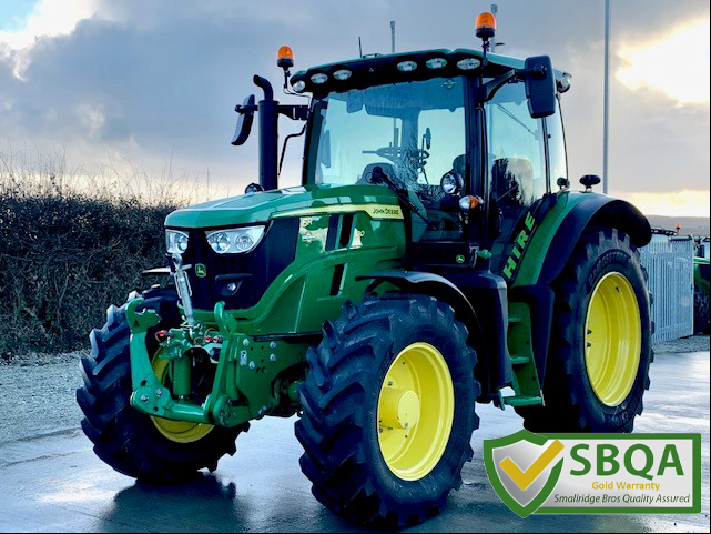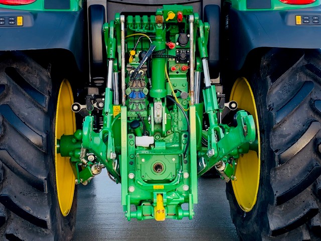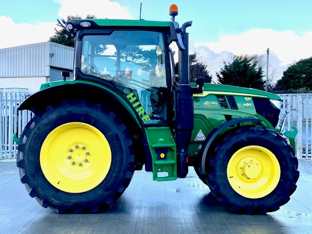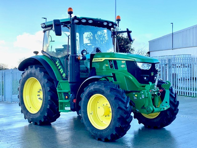 EX HIRE JOHN DEERE 6R 130. 50KPH AUTOQUAD WITH CREEPER, FULL SUSPENSION, AUTOTRAC READY, GEN 5 DISPLAY WITH AT ACTIVATION, 4 REAR & 3 MID ELECTRIC VALVES WITH JOYSTICK, HYDRAULIC TOPLINK AIR TRAILER BRAKES & ABS SOCKET, JDLINK, SAUTER FRONT LINKAGE. ON 520/70R38 & 420/70R28 BRIDGESTONE. PG PLUS WARRANTY.