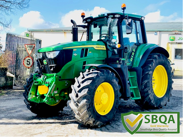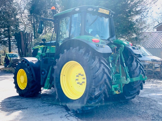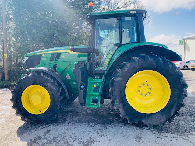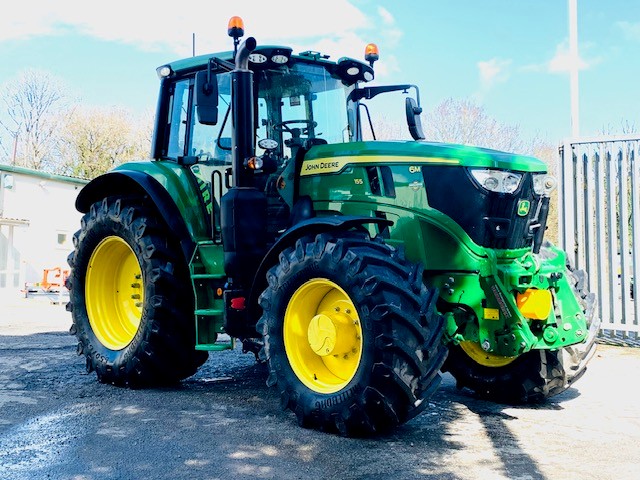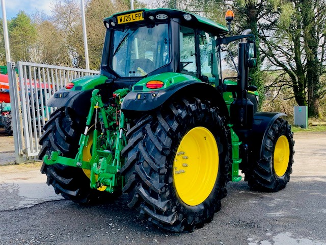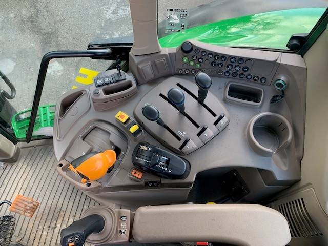 EX HIRE JOHN DEERE 6M 155. 50KPH AUTOQUAD TRANSMISSION, FULL SUSPENSION, AUTOTRAC READY, 3 MECHANICAL REAR & 3 ELECTRIC MID VALVES WITH JOYSTICK, ITEC, AIR TRAILER BRAKES & ABS SOCKET, LED LIGHTS & JDLINK. FITTED WITH 5 TON ZUIDBERG FRONT LINKAGE & PTO. ON 650/65R38 & 540/65R28 TRELLEBORG. PG PLUS WARRANTY.