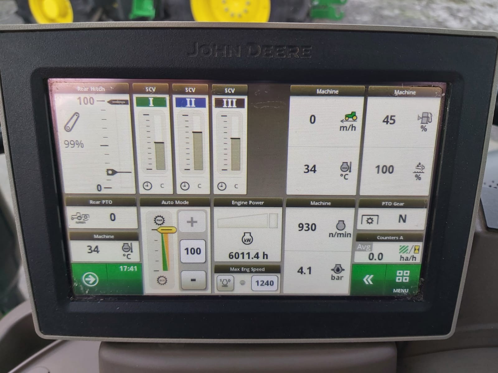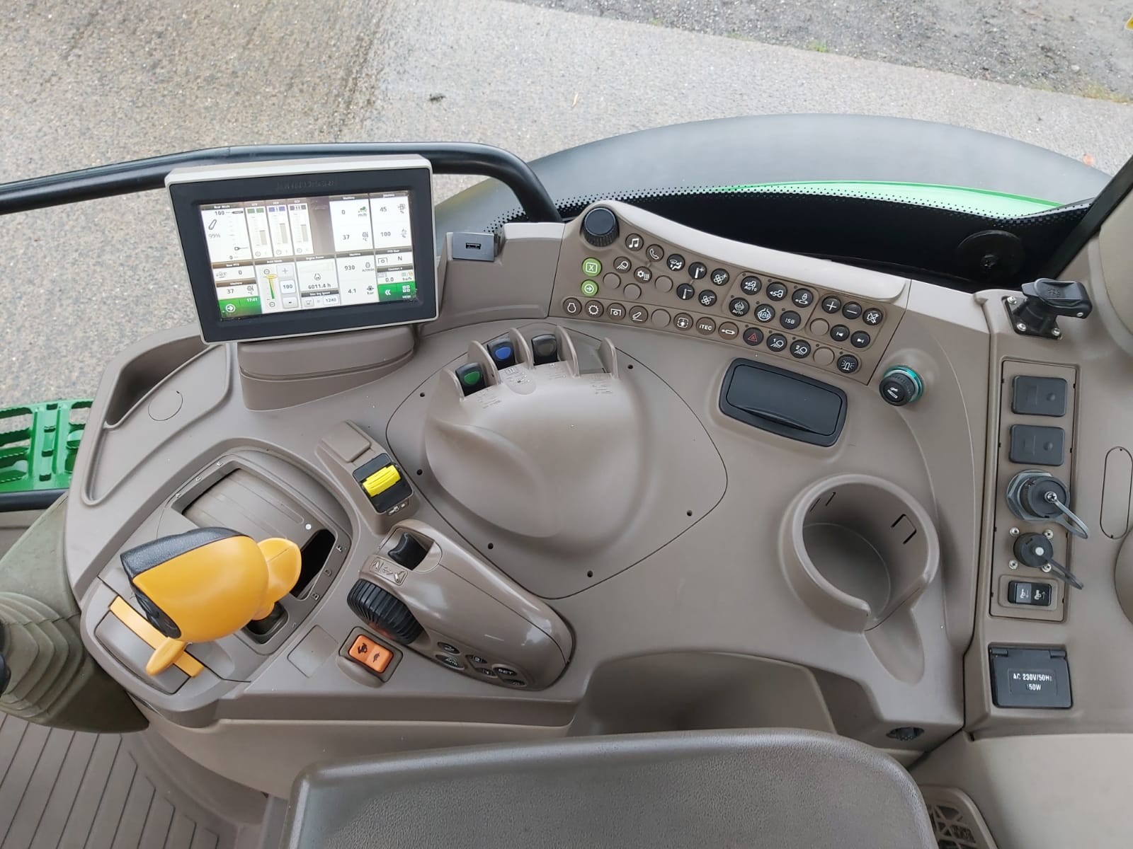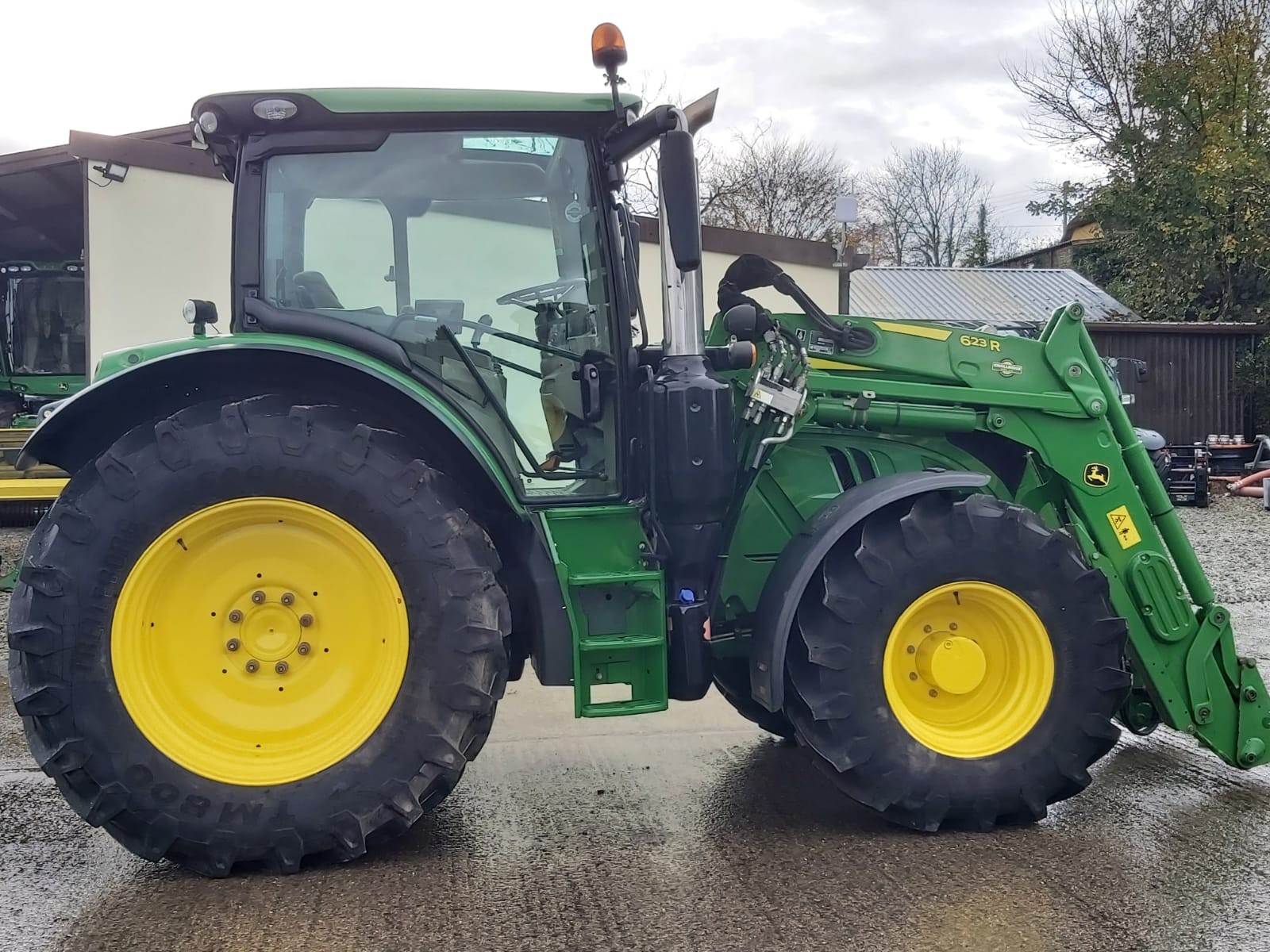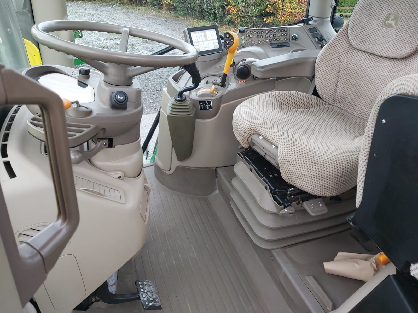 2017 JOHN DEERE 6130R. 50KPH AUTOQUAD, FULL SUSPENSION, 3 ELECTRIC REAR & 2 MECHANICAL MID VALVES, HYDRAULIC TOPLINK, AIR TRAILER BRAKES, GREENSTAR & ISOBUS READY, STAINLESS EXHAUST, ELECTRIC MIRRORS. WITH 623R SELF LEVELLING LOADER, MULTI COUPLER, LIVE 3RD SERVICE. ON 600/65R38 & 540/65R24 TRELLEBORG