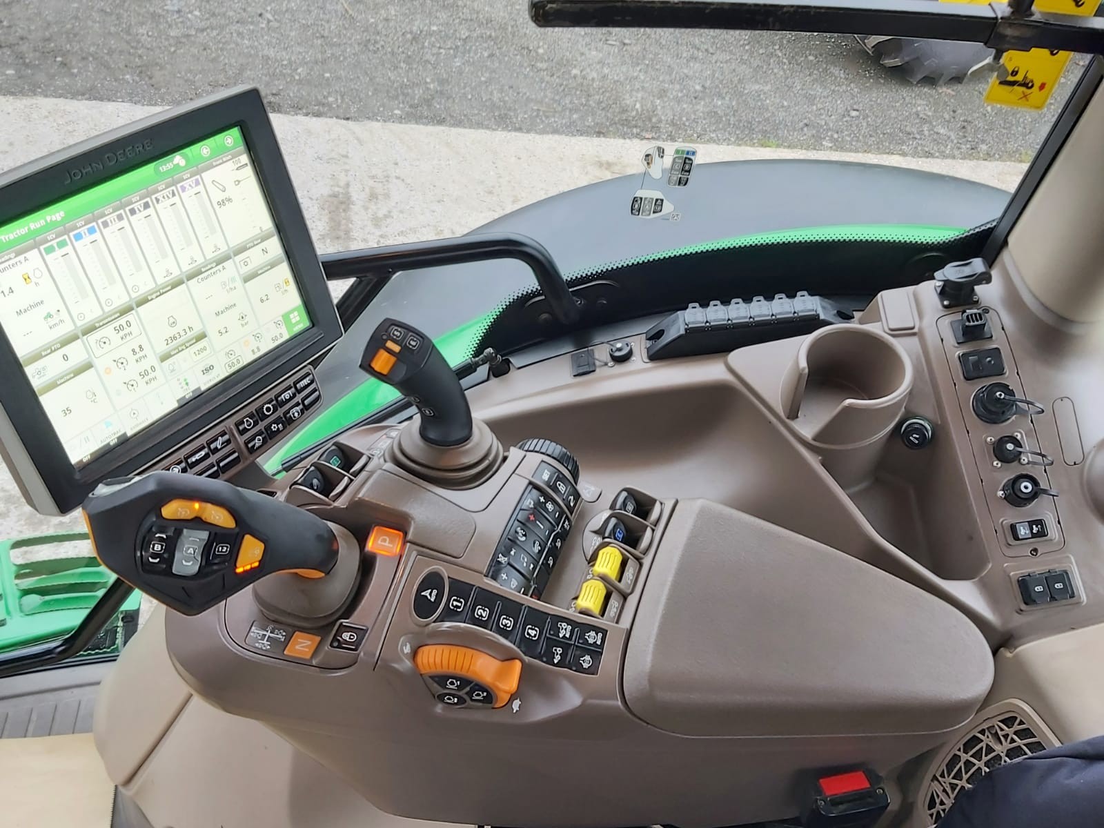 EX HIRE JOHN DEERE 6R215. 50KPH AUTOPOWR WITH COMMAND PRO, FULL SUSPENSION, AUTOTRAC READY WITH ACTIVATION, 155LPM HYDRAULIC PUMP WITH IPM TRIGGER, 4 REAR VALVES, HYD TOPLINK, AIR BRAKES, FRONT LINKAGE & PTO, REVERSIBLE FAN, LED LIGHTS, ON 650/65R42 & 540/65R30 TRELEBORG. PG PLUS WARRANTY TO MARCH 2026/3000 HRS.