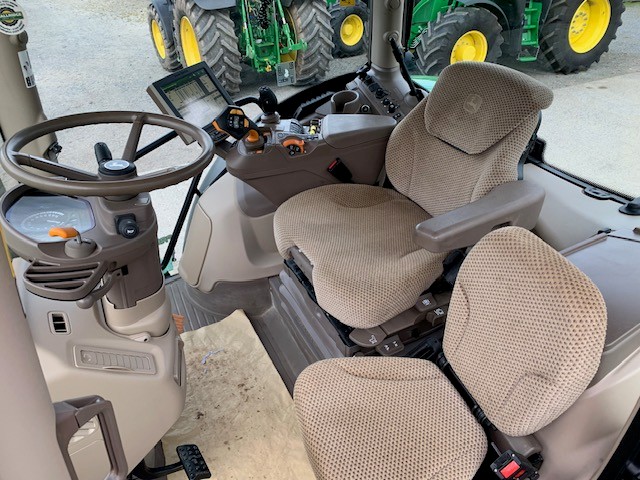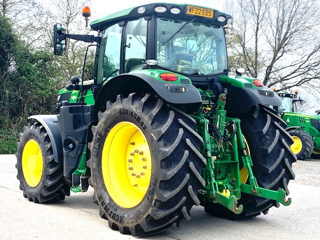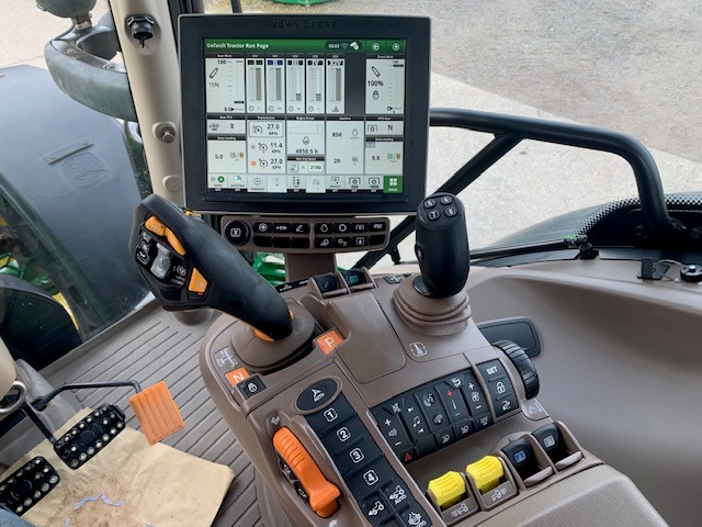 2022 JOHN DEERE 6215R PREMIUM EDITION. 50KPH IVT WITH COMMAND PRO, FULL SUSPENSION, AUTOTRAC READY, 4600 DISPLAY WITH AT ACTIVATION, 155LPM HYDRAULIC PUMP, 4 REAR VALVES, HYDRAULIC TOPLINK, AIR TRAILER BRAKES WITH ABS SOCKET, FRONT LINKAGE & PTO. ON NEW 650/65R42 & 540/65R30 BKT. FULLY SERVICED WITH SBQA.