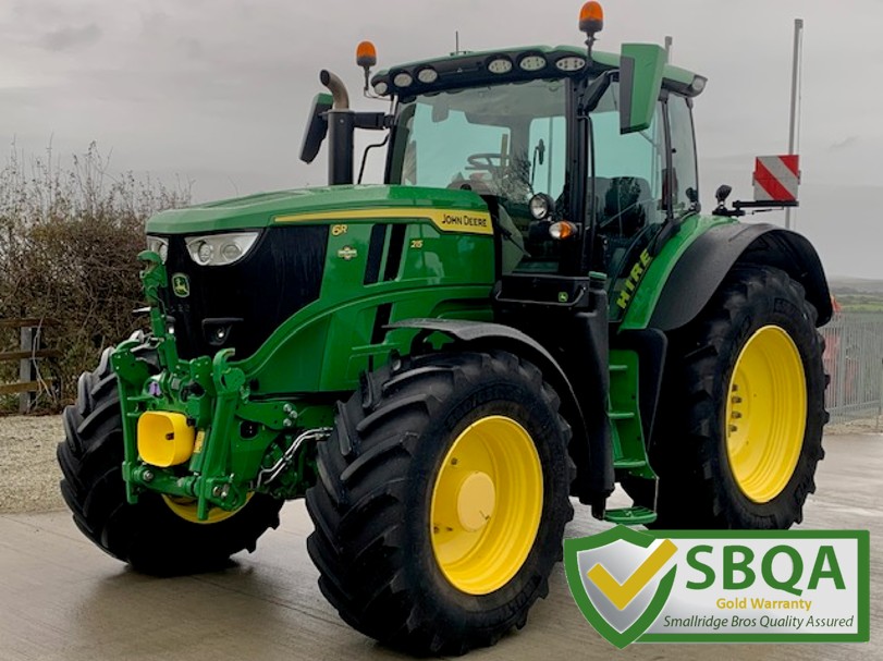 EX HIRE JOHN DEERE 6R 215. 50KPH COMMAND PRO, FULL SUSPENSION, AUTOTRAC READY, GEN 5 DISPLAY WITH ACTIVATIONS, 155LPM HYDRAULIC PUMP, 4 REAR VALVES, HYDRAULIC TOPLINK, AIR BRAKES, FRONT LINKAGE & PTO, REVERSIBLE ENGINE FAN, LED LIGHTS. ON 650/65R42 & 540/65R30 MICHELIN. POWERGARD PLUS MAY 2027/3000 HRS