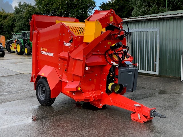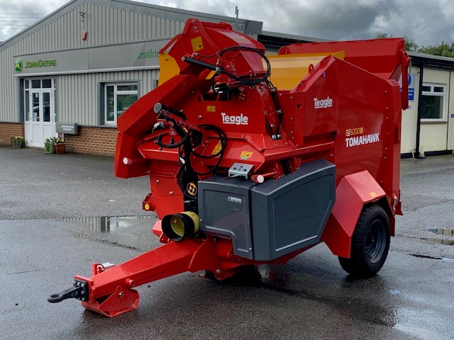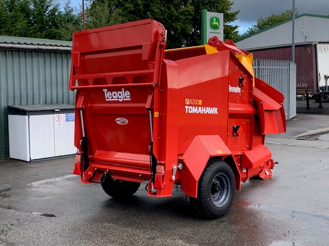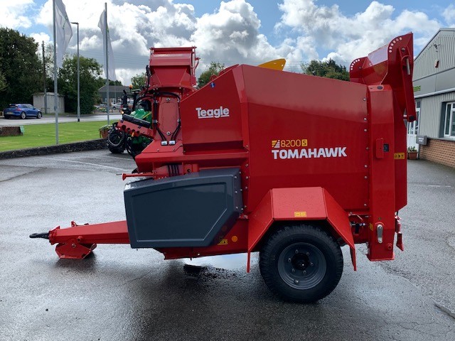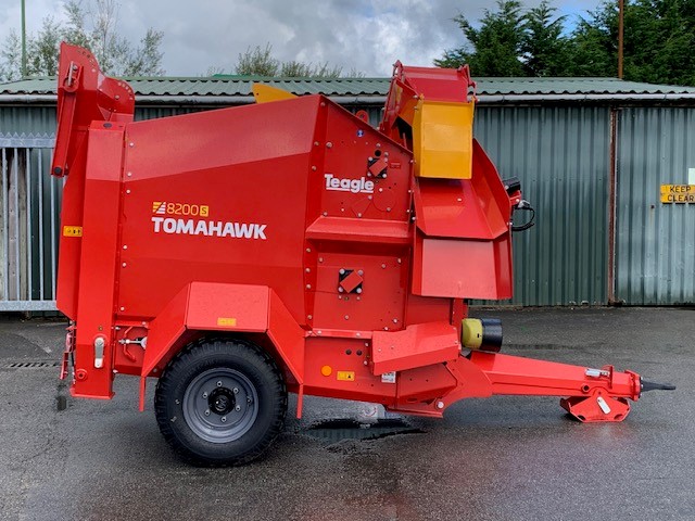 NEW TEAGLE 8200 ST TRAILED BALE PROCESSOR. 3.2 M3 CAPACITY, SWIVEL CHUTE, SINGLE CROSS BEATER, CAN BLOW STRAW UP TO 20 METRES, ELECTRIC WIRELESS CONTROL BOX WITH PAUSE/RESUME FUNCTION & SYNCHRO ADJUSTABLE BALE RESTRAINT REMOTE TAILGATE SWITCH & MUDGUARDS. CAN HANDLE BALED & CLAMPED SILAGE.