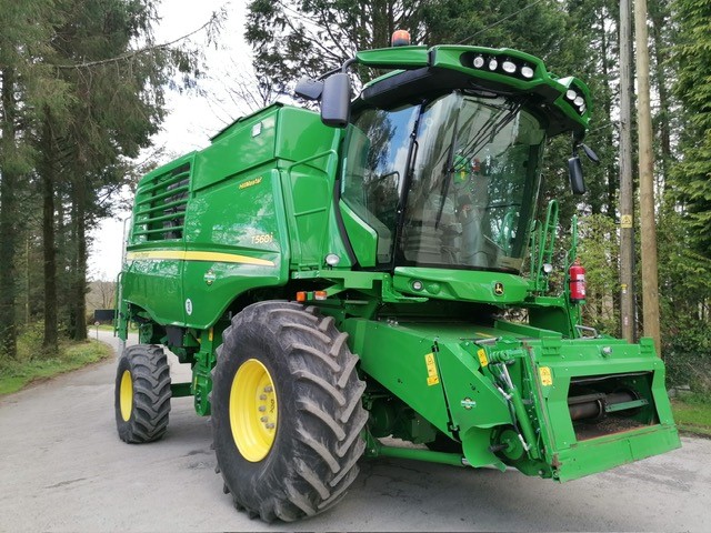 2020 JOHN DEERE T560 HILLMASTER COMBINE. 30KPH TRANSMISSION, 10000 LITRE GRAIN TANK, FOLDING 6.5 METRE UNLOADING AUGER, ELECTRIC ADJUST SIEVES, CHAFF SPREADER & STRAW CHOPPER, AUTOTRAC READY. ON 680 & 480 TYRES. WITH 625R HEADER & SHELBOURNE C7500 TROLLEY. SERVICED & READY FOR HARVEST.