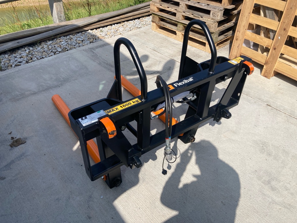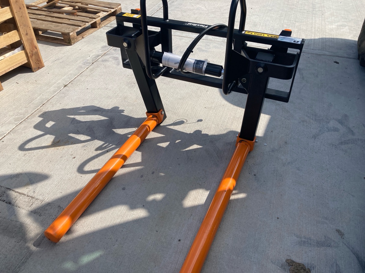 NEW QUICKE FLEXIBAL ROUND BALE HANDLER. WITH REMOVEABLE 89mm DIAMETER ROLLERS WHICH WILL ALLOW IT TO BE USED AS A BALE SPIKE, WELDED ON EURO BRACKETS & HOSES.