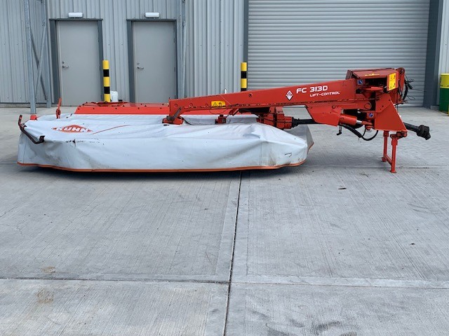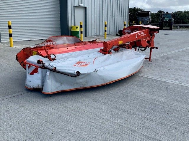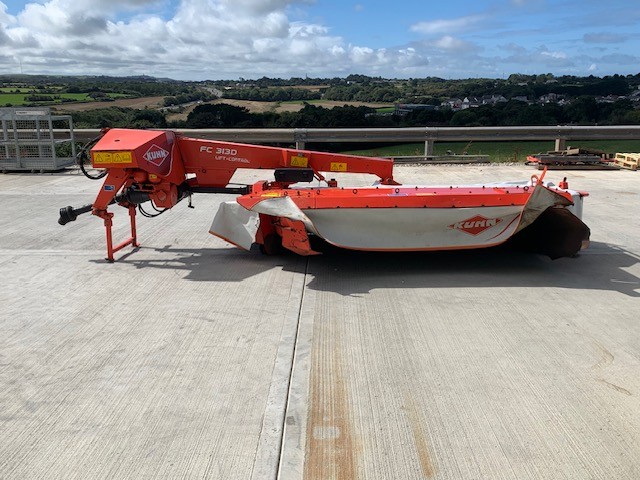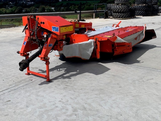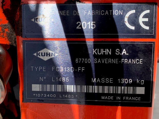 2015 KUHN FC 313D REAR MOUNTED MOWER CONDITIONER. 3.1 METRE WORKING WIDTH, QUICK CHANGE BLADES, PRE-LOADED STEEL TINE CONDITIONER ROTOR, QUICK CHANGE FROM SWATH TO SPREAD, HORIZONTAL FOLDING FOR TRANSPORT.