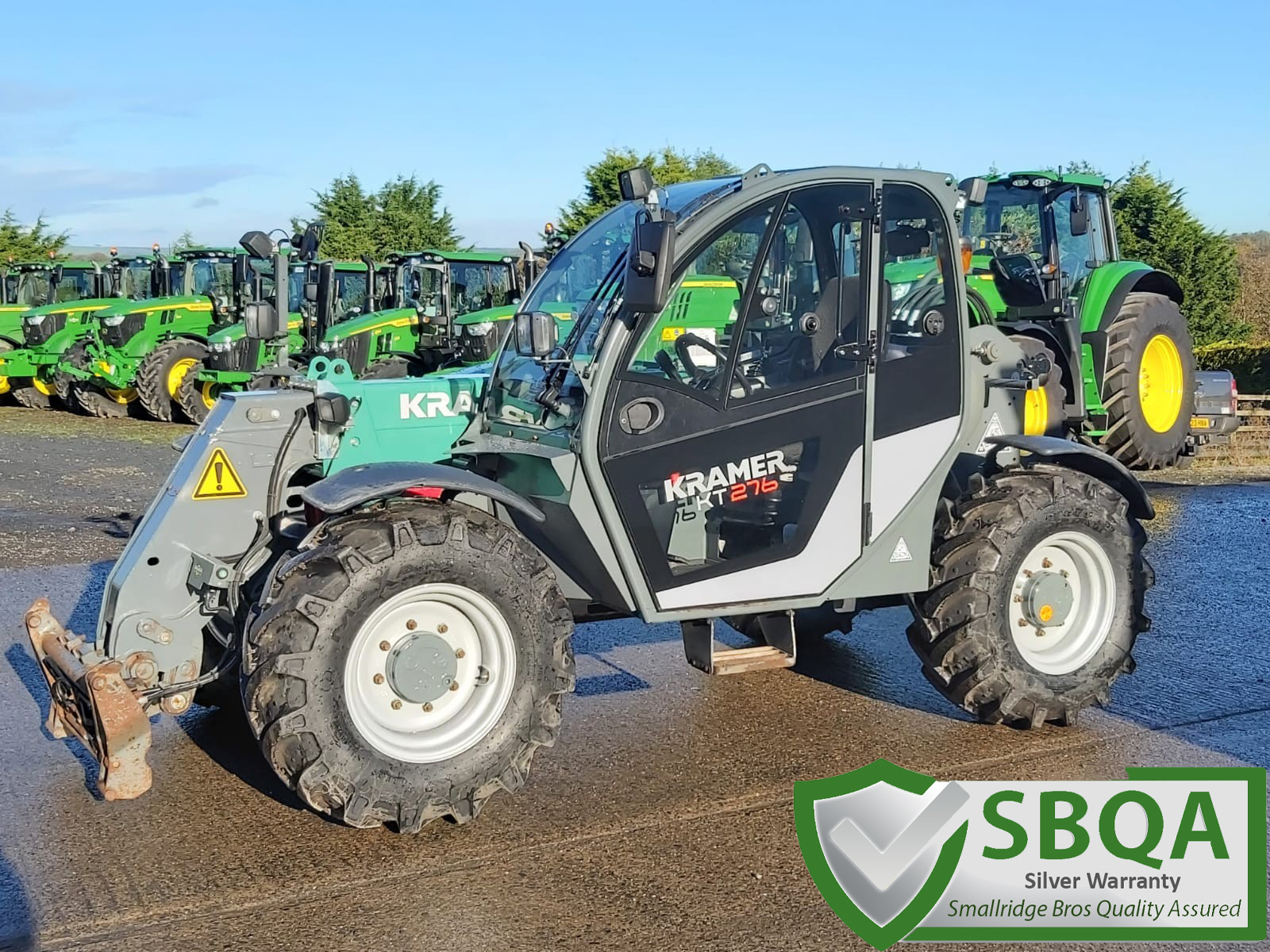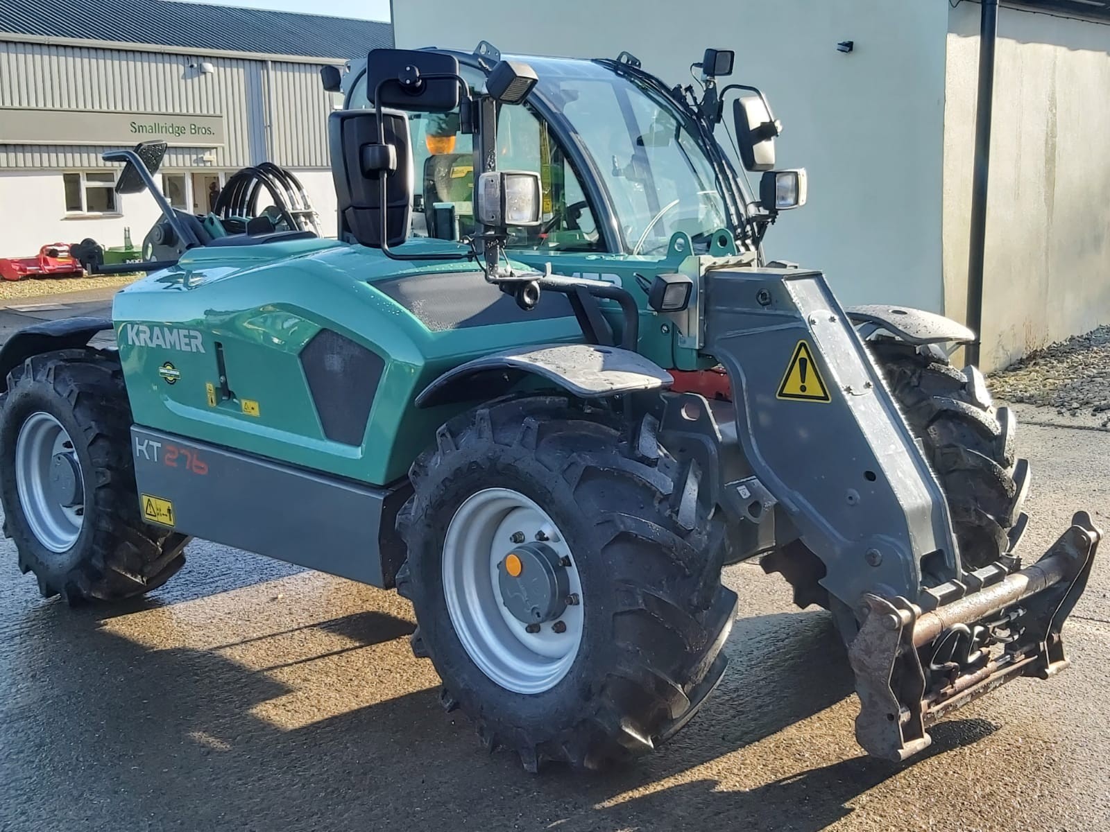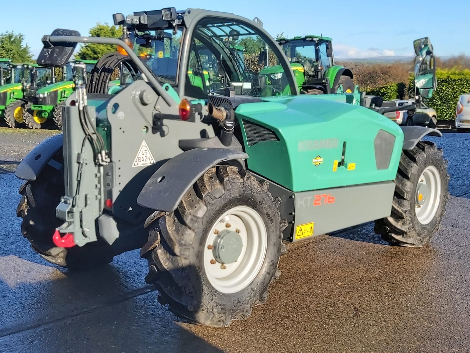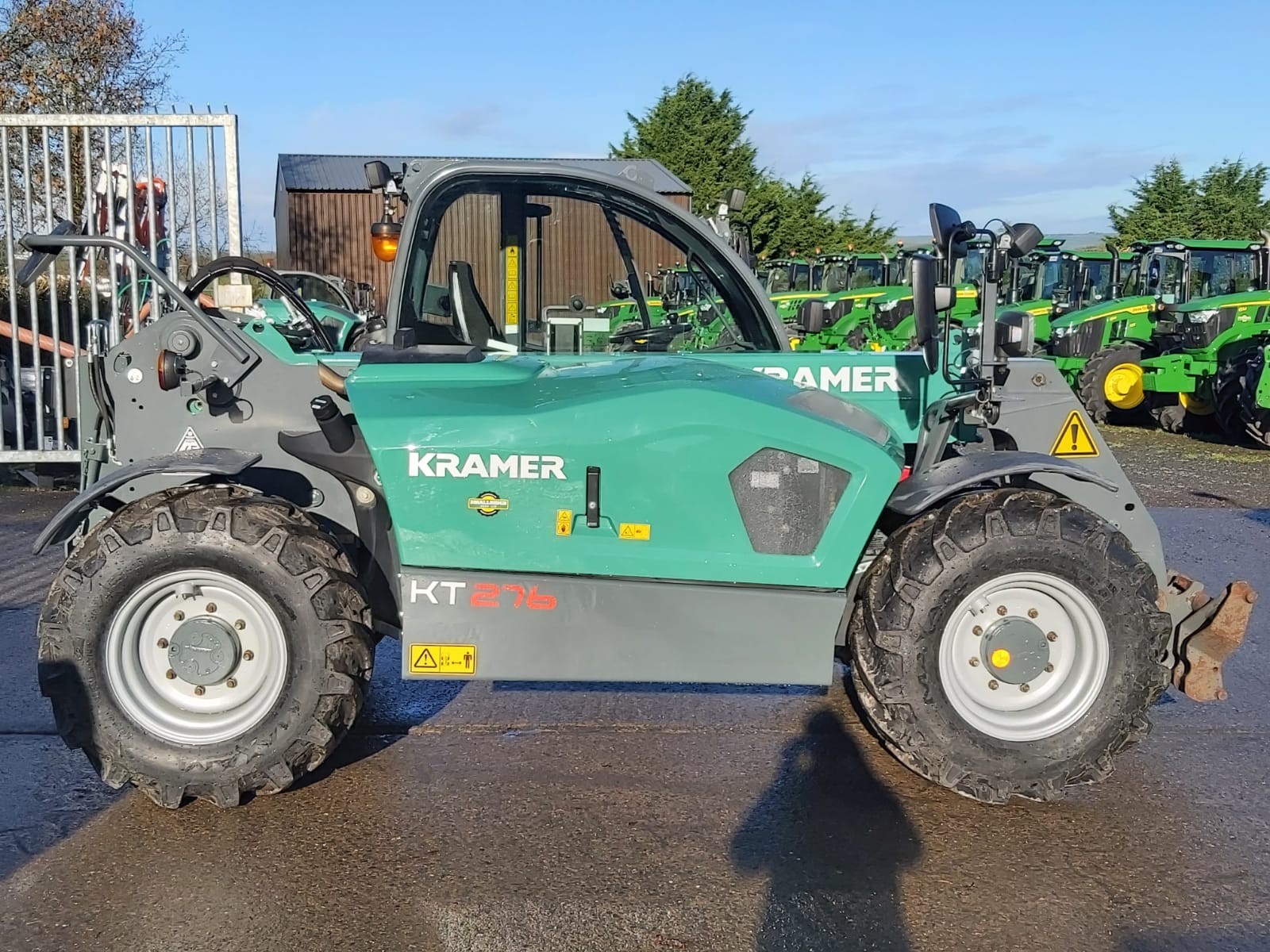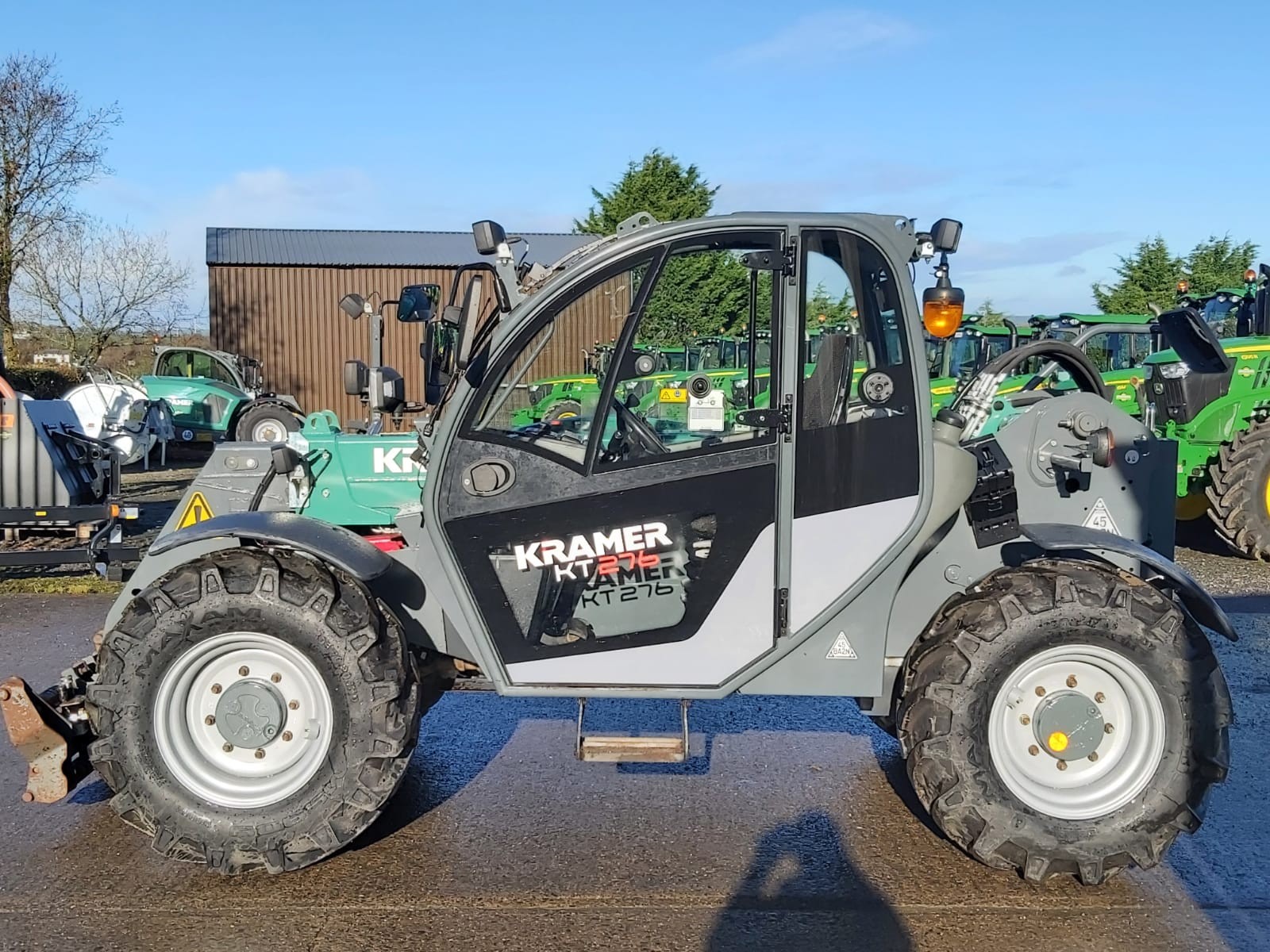 2022 KRAMER KT 276 TELEHANDLER. 75HP KOHLER ENGINE WITH REVERSING FAN, 30KPH 2 SPEED HYDROSTATIC TRANSMISSION, AIR CONDITIONED CAB WITH AIR SUSPENSION SEAT & STEREO, BOOM SUSPENSION, PICK-UP HITCH, HYDRAULIC LOCKING EURO CARRIAGE. ON NEW 405/70R20 MAXXAM. FULLY SERVICED & PREPARED WITH SBQA.